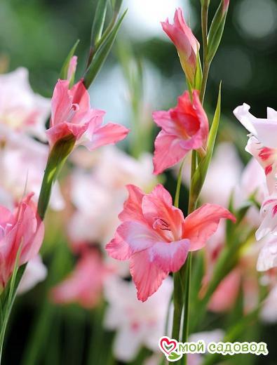 Гладиолус Чарминг Бьюти (Charming Beauty)  — декоративное луковичное растение, представитель семейства Ирисовые. Стебли прямые, одиночные, с тонкой линейной листвой. Достигают высоты в до150 см. Цветы собраны в несколько видов соцветий: одностороннее, двустороннее, спиральное колосовидное. Соцветие длиной до 80 см. Сами цветы сидячие, с воронкообразным околоцветником, состоящим из шести неравных долей. Посадка. Из-за погодно-климатических особенностей в разных регионах России сроки посадки отличаются: На Юге (Краснодарский край (Кубань), Северный Кавказ) — сажать можно уже в конце апреля. В Средней полосе (в т. ч. Подмосковье) — оптимальное время приходится на начало или середину мая. В Сибири, на Урале, в Ленинградской области — в середине или конце мая. Места посадки должны быть солнечными, без сквозняков и с качественно дренированной почвой. Затенённые участки плохо сказываются на развитии культуры. Однако в южных районах небольшое затенение допускается. Глубина высадки луковиц обычно составляет 8-10 см (для мелких), 10-15 см (для крупных). Полив. Средняя частота поливов культуры составляет раз в неделю, а летом, в жаркие дни, один раз в 3-4 суток. Поливают утром или вечером, используя около 10-12 л воды на 1 м2. Полив производят в специально подготовленные междурядные борозды, углублённые до 30-50 мм с тем, чтобы капли воды не попадали на листики гладиолусов. Без регулярного полива цветы быстро завянут. По завершении процедуры кусты окучивают. Раз в декаду обязательно производят рыхление почвы.